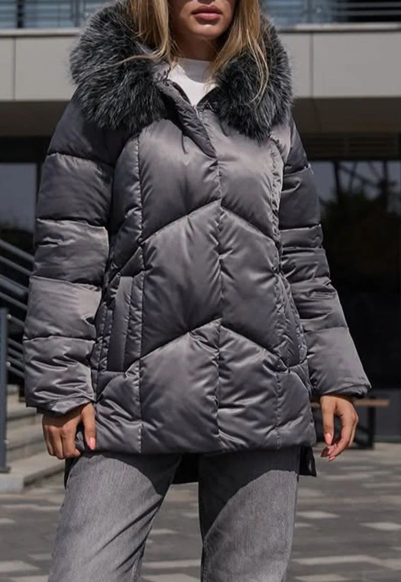 Esta chaqueta de plumas está hecha de materiales de alta calidad, con un diseño de textura acolchada cortada en líneas diagonales paralelas, simple y ordenado, diseño con capucha, el ala está conectada con el extremo de la pelusa blanca y negra, el conjunto es de un color degradado, envolviendo el cuello, lleno de moda y calidez al mismo tiempo. El interior está relleno con suficiente plumón de pato, que puede mantenerte abrigado durante todo el invierno.