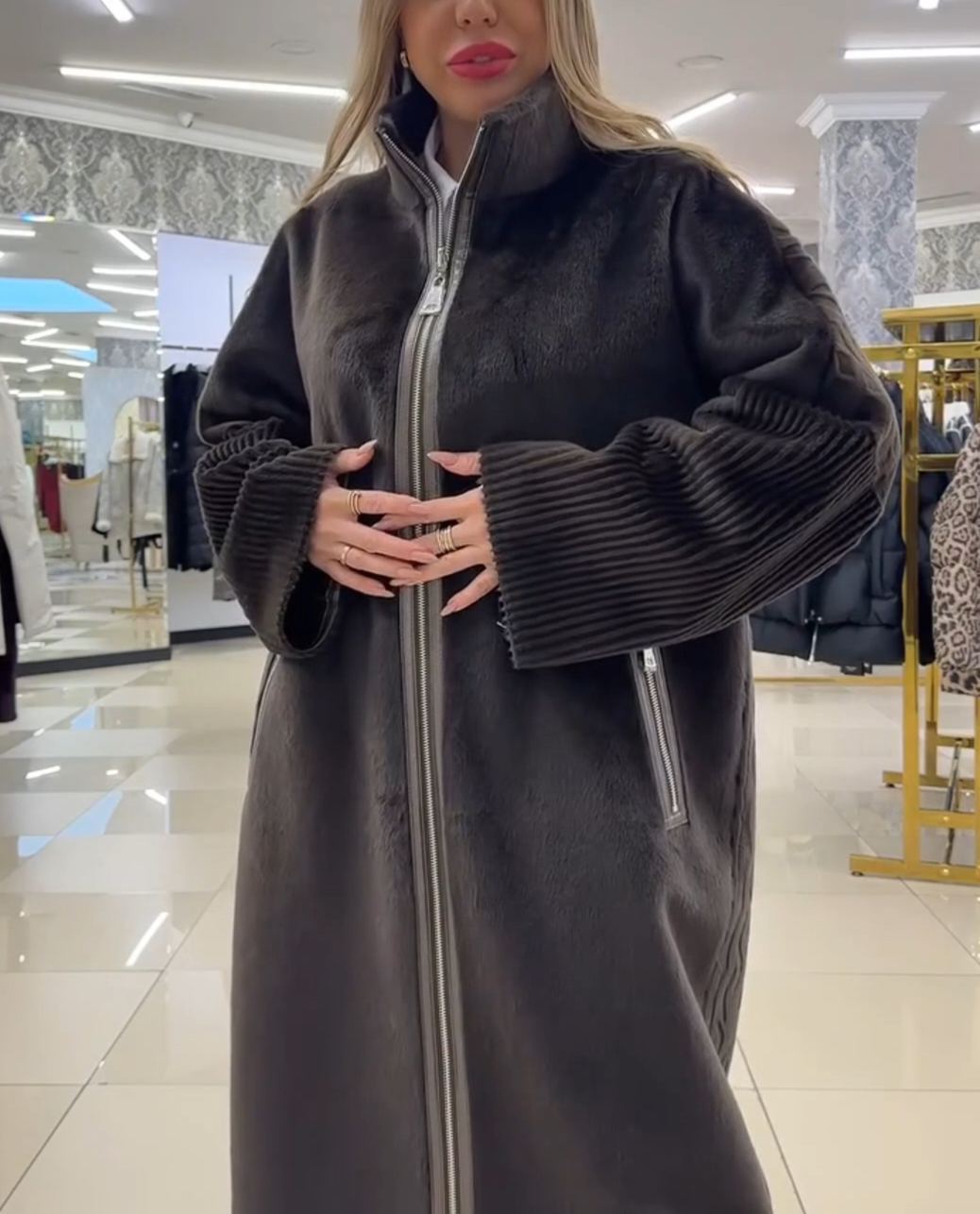 ¡CHAQUETA PRECIOSA! 🤩 Compré esta chaqueta, pero no me había fijado en que el pelo tenía un tono marrón anaranjado. No era exactamente lo que quería. Por suerte, la amable dueña se puso en contacto conmigo para saber si estaba contenta con la chaqueta. Enseguida me ofreció la opción de elegir otra. ¡La chaqueta es moderna, súper elegante y calentita!