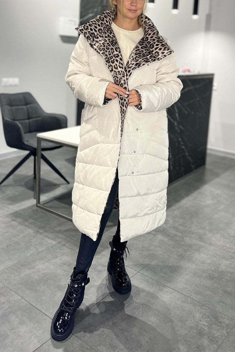 Abrigo de plumón de pato de lujo con estampado de leopardo y doble cara